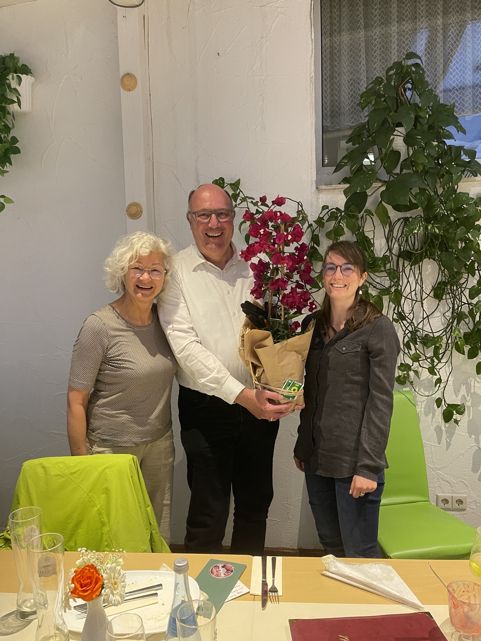 Marina, die ihn bereits während seiner Zeit im Gemeinderat als langjährige Mitstreiterin begleitet hatte, sowie Anne Höh-Kuzelak, Vorsitzende des Ortsverbands, würdigten mit persönlichen Worten des Dankes und einem Präsent seine politische Arbeit, sein Engagement und seine ehrliche Begeisterung für die Themen, die ihm am Herzen lagen.